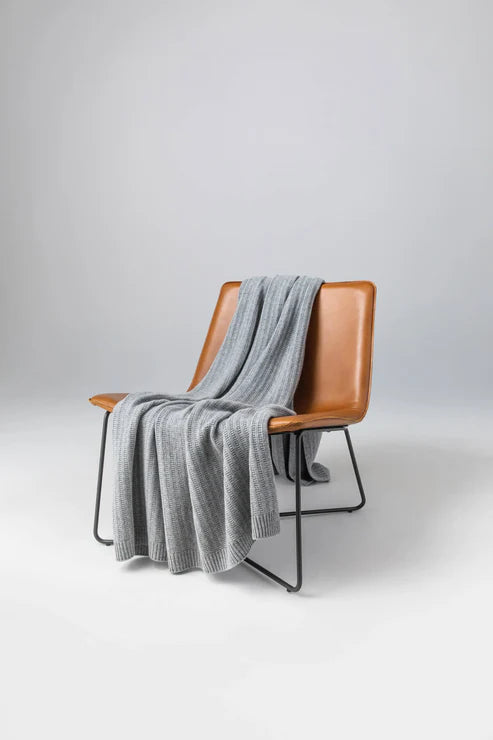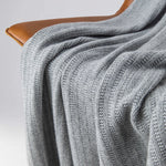 Our Light Grey Texture Knitted Cashmere Blanket is a luxury must-have, the ultimate treat for yourself or a loved one. This blanket features a textural rib design, adding a sophisticated touch to our throws collection. Crafted in our Scottish Borders mill from the finest cashmere, it feels sumptuous, voluminous, and incredibly soft. Whether draped over the couch or used as a cosy blanket, this piece offers unparalleled warmth and elegance
