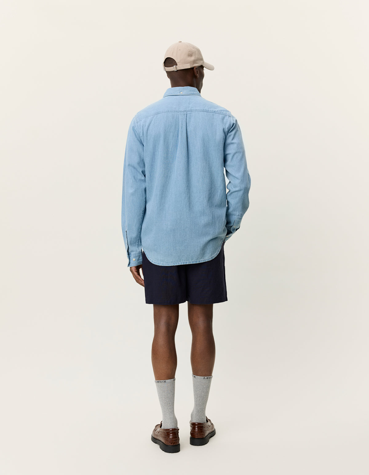 Designed in a regular fit, it features a button-down collar that adds subtle structure while maintaining a relaxed feel. The light indigo wash gives the shirt a worn-in appearance, making it easy to style across seasons.