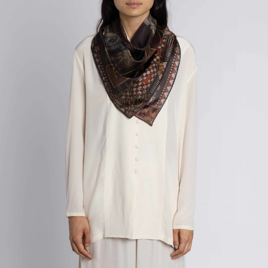 Sabina Savage Secrets of the Bison Silk Twill Chambray/Stone 90 x 90cm