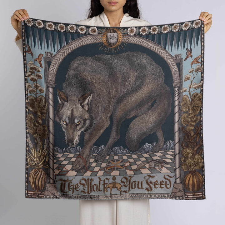 Sabina Savage The Wolf You Feed Silk Twill Gunmetal/Gloaming 90 x 90cm