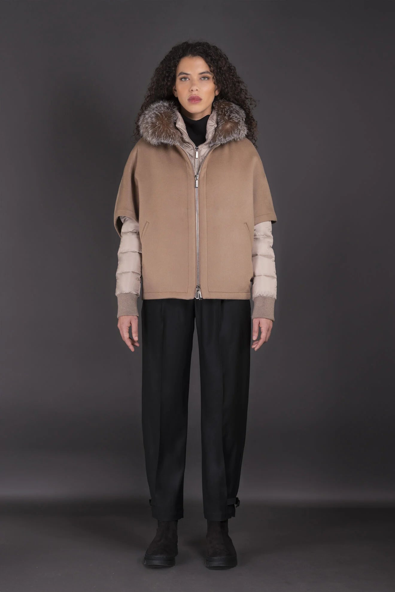 Wear the cape alone, the bomber on its own, or combine both for maximum warmth—this Made in Italy piece is designed to move seamlessly through seasons and settings with understated luxury.