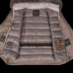 • Detachable hood with fox fur trim (Vulpes Lagopus)