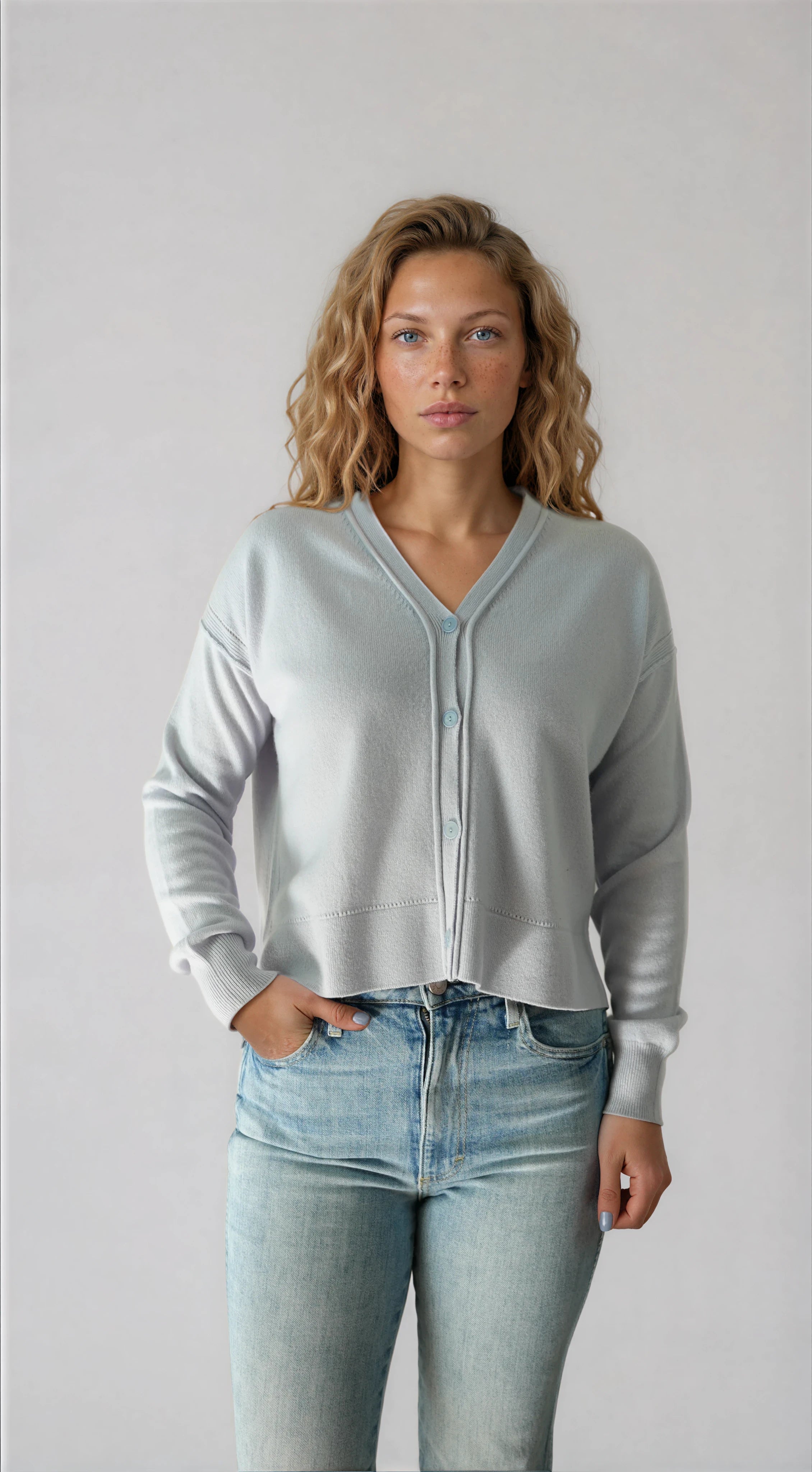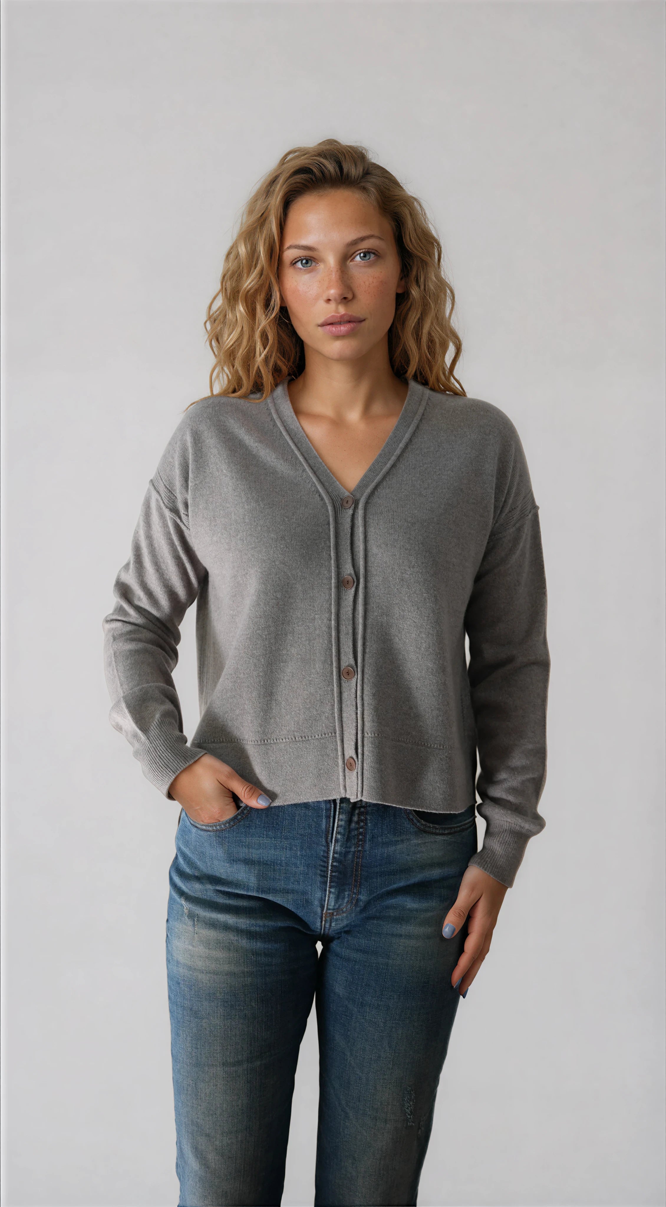 Designed with an easy, elegant drape, this cardigan layers effortlessly over tees, silk blouses, or dresses — polished enough for evenings, yet relaxed enough for everyday wear. The knit has a quiet confidence to it: refined without feeling precious, luxurious without being flashy.