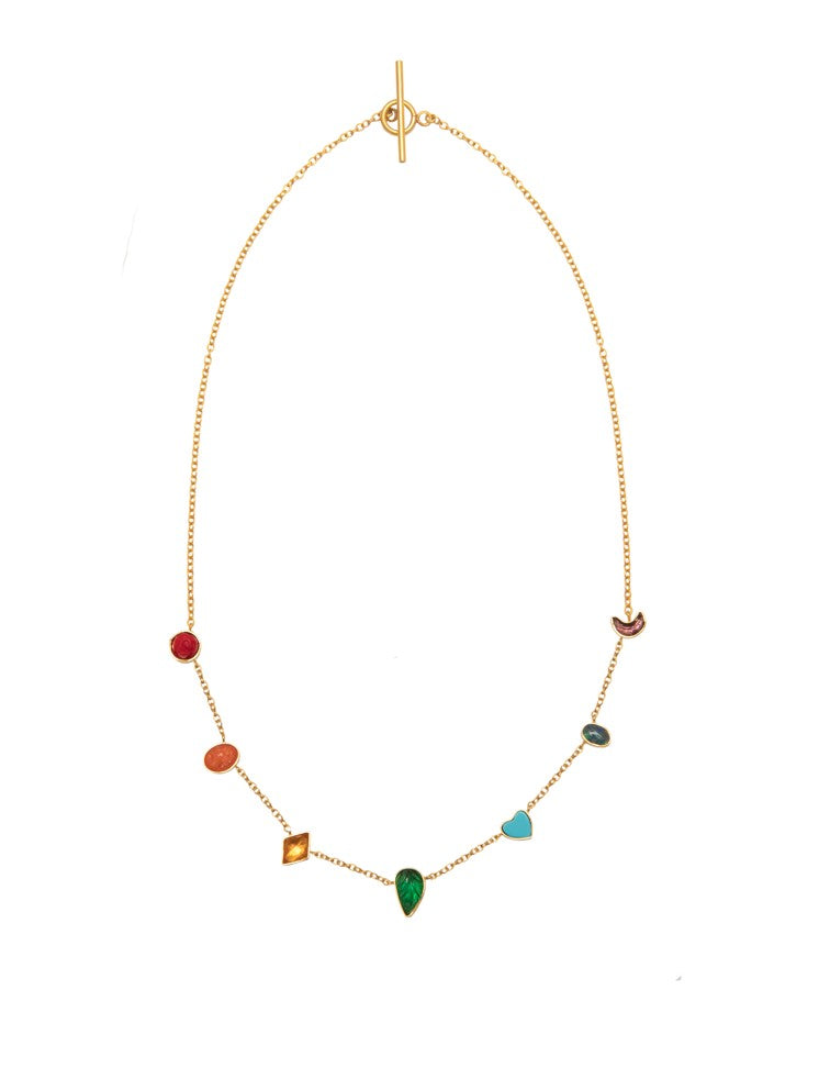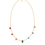Handcrafted in Edinburgh, this necklace blends ethically sourced materials with vintage finds. It features vibrant coral, opal, turquoise, a coral cameo, and vintage glass and rhinestones—all brought together on a fine 18k gold-plated silver chain. The petite scale makes it perfect for everyday wear or layered with other favorites.