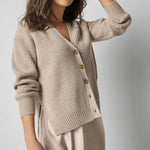 The Luxe Cashmere Blend Relaxed Side Vent Cardigan is knit in a chunky cardigan stitch, giving this style texture and structure while maintaining a soft handfeel and beautiful shape. Designed with a relaxed fit, this modern take on a classic cardigan features tall side slits, creating an effortless, easy-to-layer silhouette. Hitting at the hip, it pairs perfectly with a satin dress or satin bottoms for an elevated look, or throw it on over a crisp poplin shirt with denim for everyday wear.