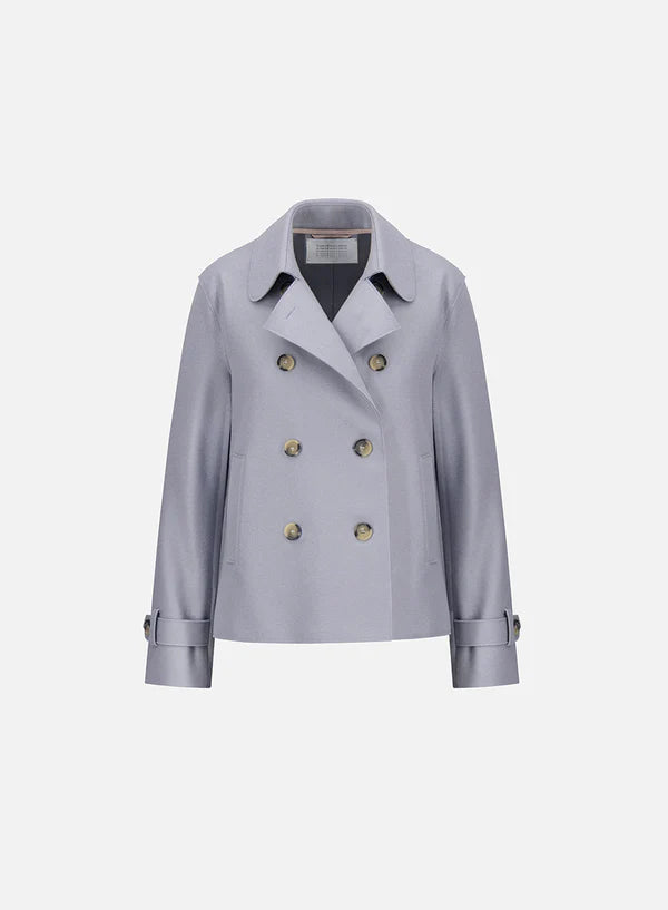 Double-breasted croped trench coat, unlined in knitted light felted wool.Short jacket with long wide sleeve and double-breasted fastening featuring a notched lapel and side-seam pockets. Raw-edge finish.Made in Italy with Italian fabric.